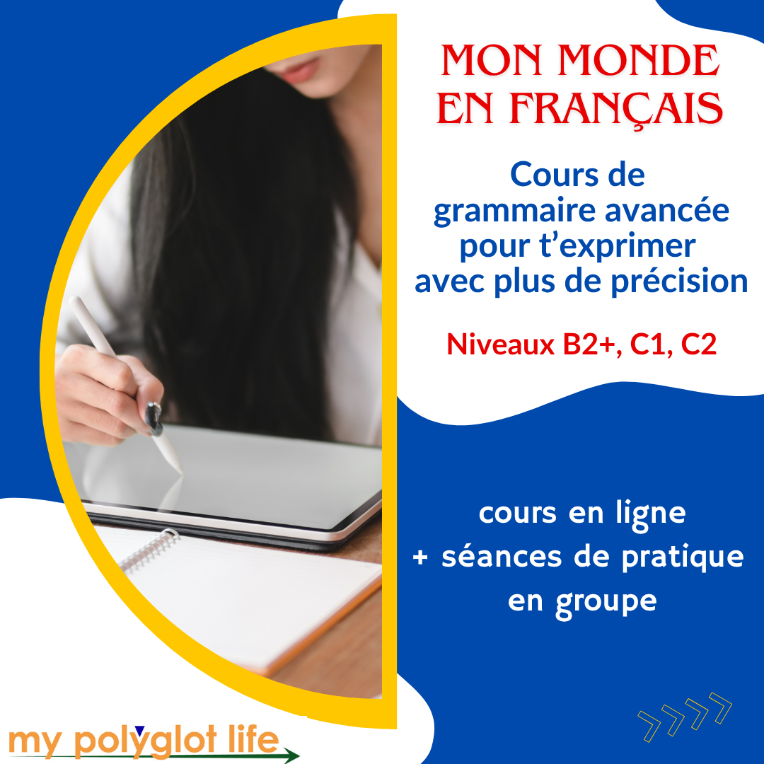 Au fil des années, je me suis retrouvée à revoir les mêmes points de grammaire délicats avec des apprenants avancés. J'ai donc décidé de compiler les questions les plus fréquentes dans un cours en ligne, que tu es sur le point de commencer!